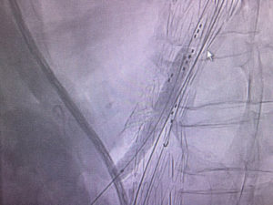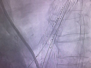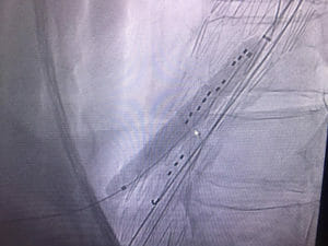 Gore Viabahn VBX balloon expandable covered stent might provide an excellent option for branched thoracoabdominal stent graft. Two VBX used today for successful bridging of coeliac axis and SMA branches. Easy delivery without sheath, great tractability, wide range of lengths and significant postdilatation bracket with no concerning shortening.